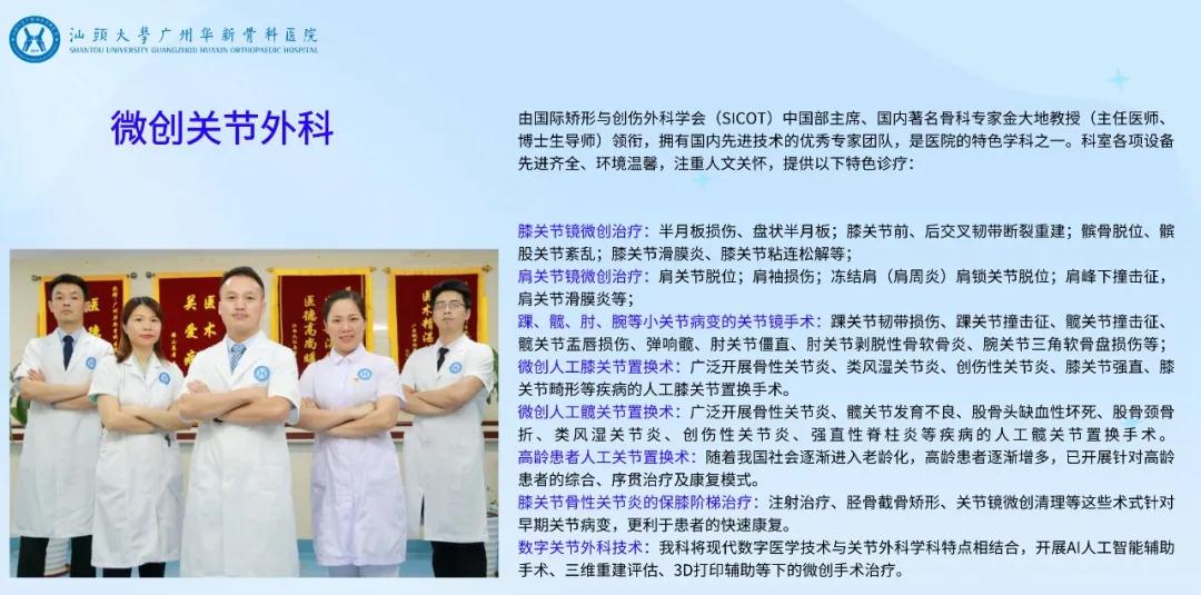 为方便关节疾病患者就诊需求,国内优秀微创骨科专家谢志云主任将于每周三在汕头大学广州华新骨科医院一楼关节门诊出诊,如需前来看诊,可关注医院公众号(汕头大学广州华新骨科医院)进行预约。