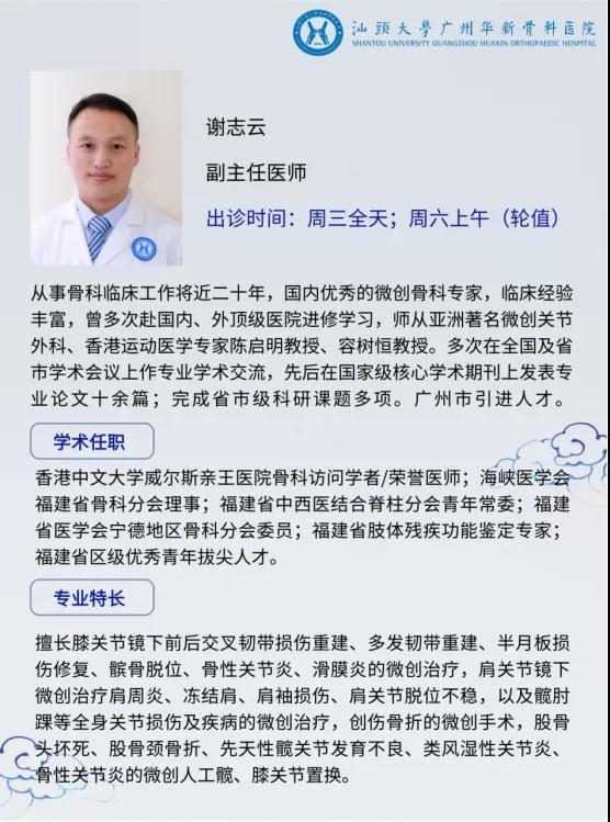 【名医专家】微创关节外科专家谢志云主任门诊开诊通知